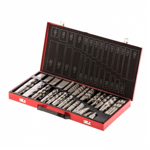 Сверла изготовлены из быстрорежущей стали методом горячего винтового прокатывания. Полированная поверхность служит для уменьшения сопротивления материала во время работы. За счет добавления легирующих элементов имеют высокую прочность. Предназначены для сверления сталей, чугуна и цветных металлов. Состав набора: 1 мм-10 шт.; 1,5 мм-10 шт.; 2 мм-10 шт.; 2,5 мм-10 шт.; 3 мм-10 шт.; 3,2 мм-10 шт.; 3,5 мм-10 шт.; 4 мм-10 шт.; 4,2 мм-10 шт.; 4,5 мм-10 шт.; 5 мм-10 шт.; 5,5 мм-10 шт.; 6 мм-10 шт.; 6,5 мм-10 шт.; 7 мм-10 шт.; 7,5 мм-10 шт.; 8 мм-10 шт.; 8,5 мм-5 шт.; 9 мм-5 шт.; 9,5 мм-5 шт.; 10 мм-5 шт.; 10,5 мм-5 шт.; 11 мм-5 шт.; 11,5 мм-5 шт.; 12 мм-5 шт.; 12,5 мм-5 шт.; 13 мм-5 шт.; Особенности Сверла имеют обратную конусность: диаметр его калибрующей части уменьшается от режущей части по направлению к хвостовику, что исключает возможность заклинивания при сверлении. Изготовлены из быстрорежущей высококачественной стали марки Р4М4Х2. Угол заточки 118 градусов. Твердость режущих кромок 62-64 HRC. Преимущества Внешняя поверхность полирована, что обеспечивает качественный отвод стружки. Высокая точность размеров благодаря поэтапному шлифованию. Удобный металлический кейс. Широкий размерный ряд.